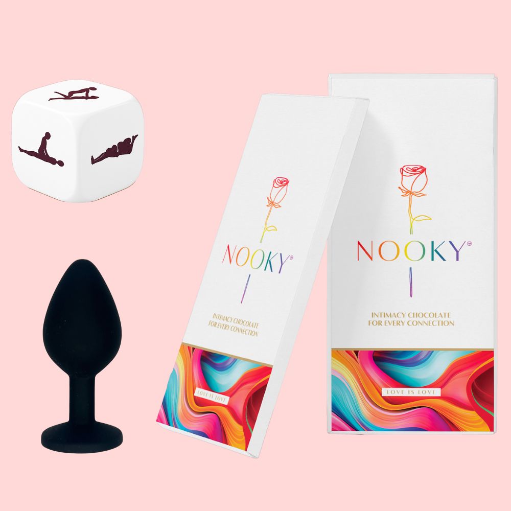Includes: Position Dice, Keystone Butt Plug, LGBTQ ChocolateCelebrate love your way — playful dice, Pride...
