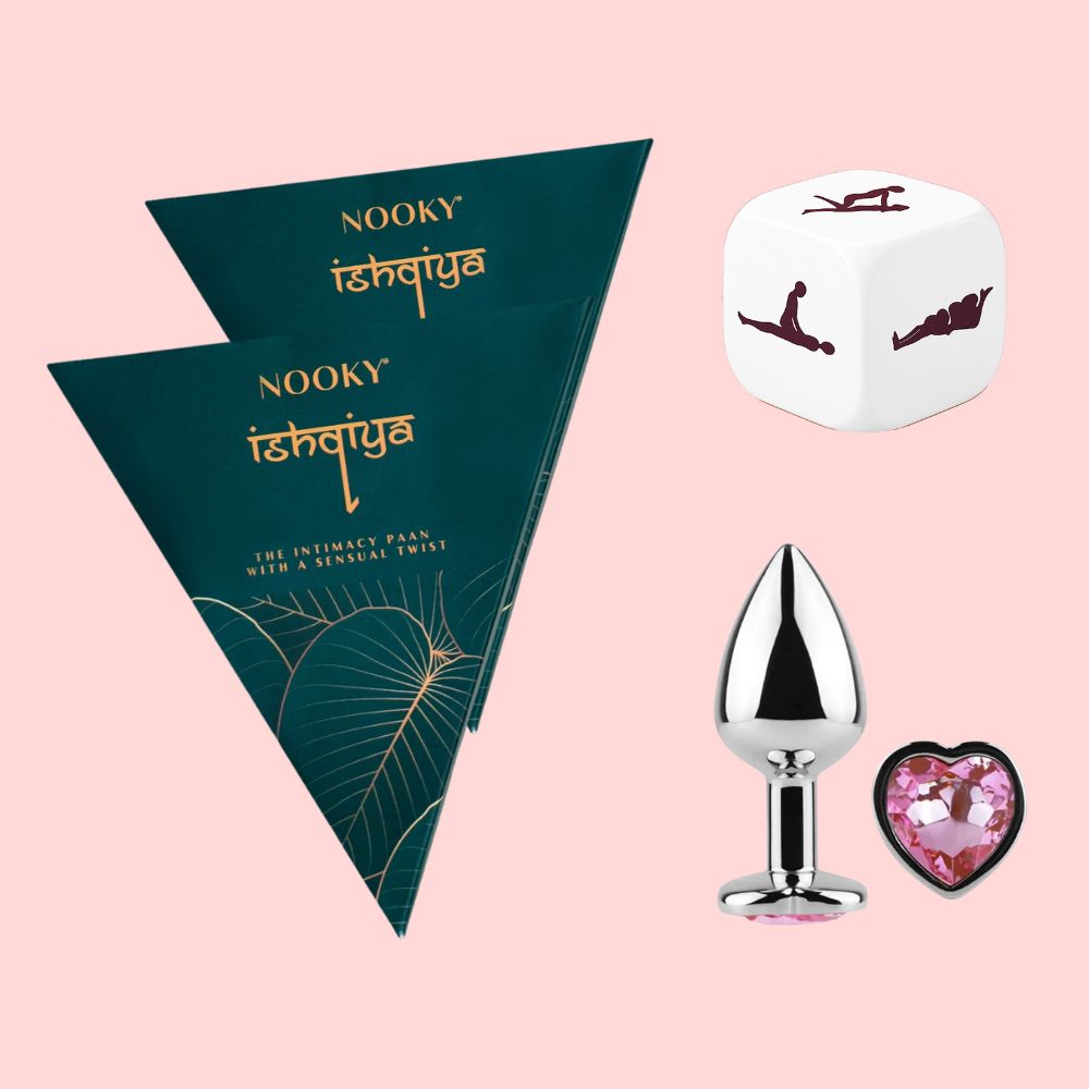 Includes: Position Dice, Keystone Butt Plug, Paan Chocolate