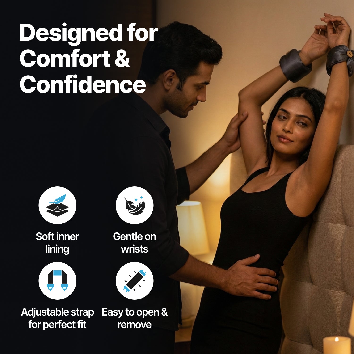 Stylish, soft handcuffs for safe and playful bondage.