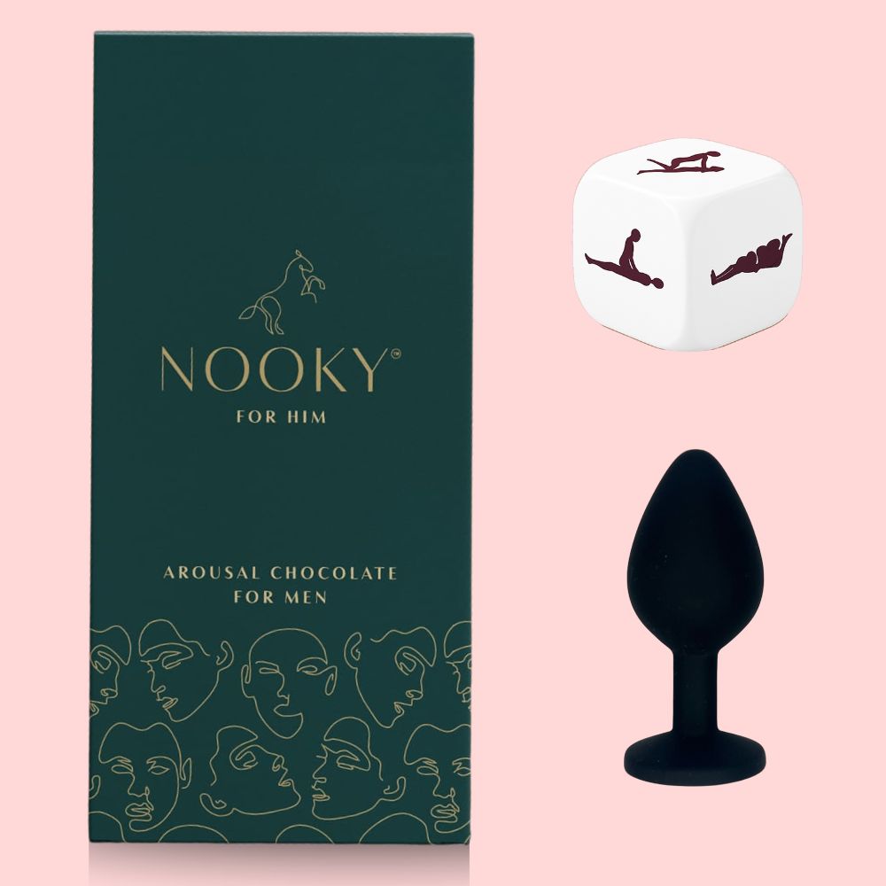 Includes: Position Dice, Core Butt Plug, Chocolate for Him