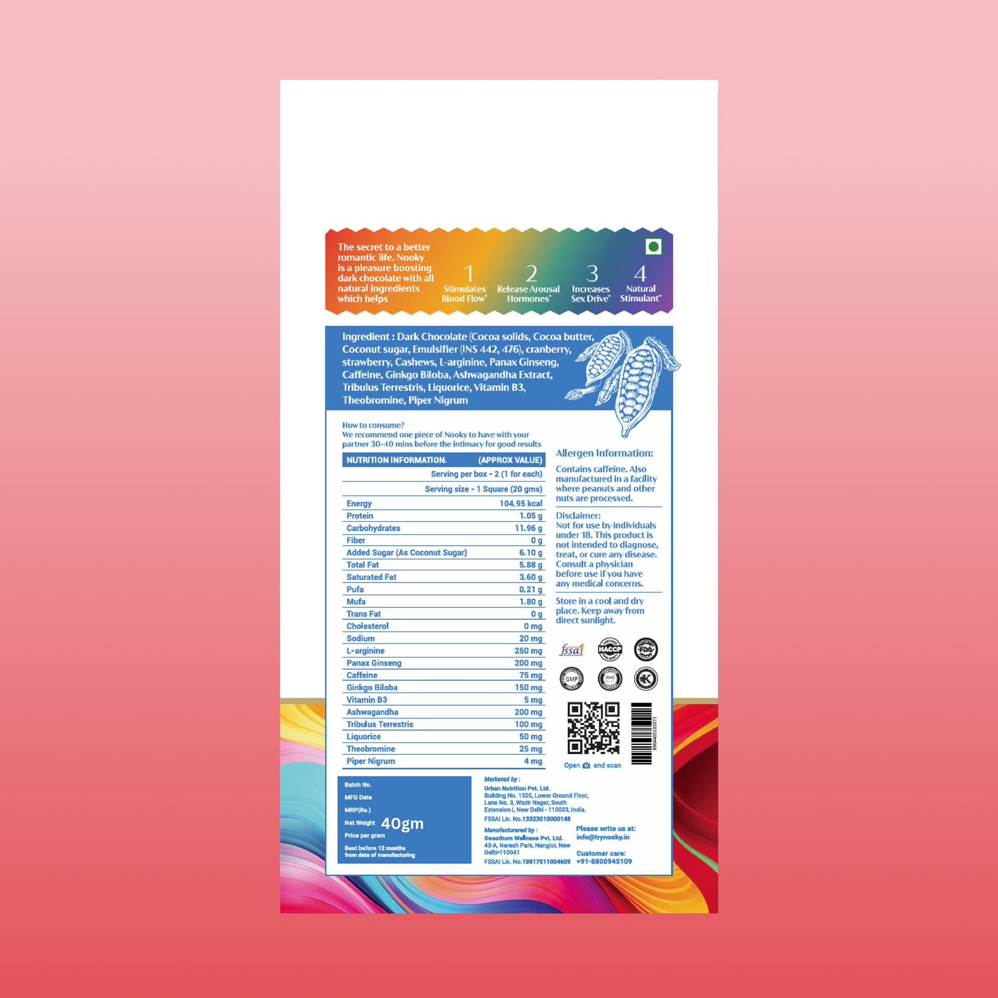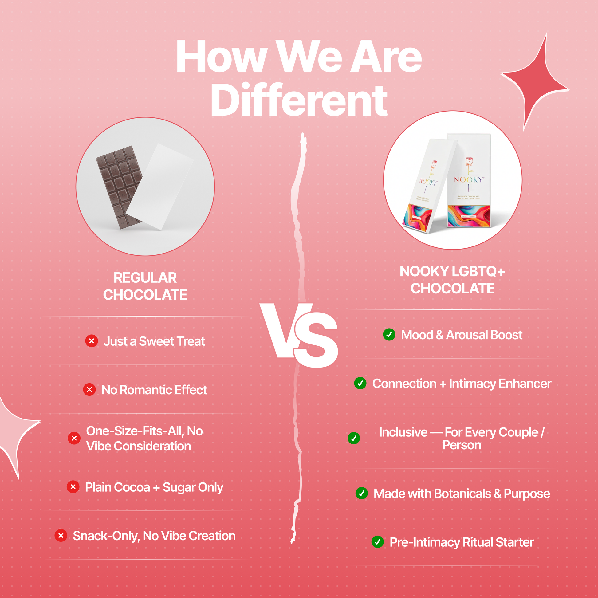 Introducing the Nooky Mood Enhancing Chocolate for LGBTQ+, affectionately dubbed Every Connection. This indulgent dark chocolate isn’t just about flavor—it’s a mood-lifter crafted to honor all forms of love and self-expression. Whether you’re celebrating yourself or sharing the moment, this vegan-friendly, plant-powered bar is designed to deepen bonds, spark joy, and raise the vibe.