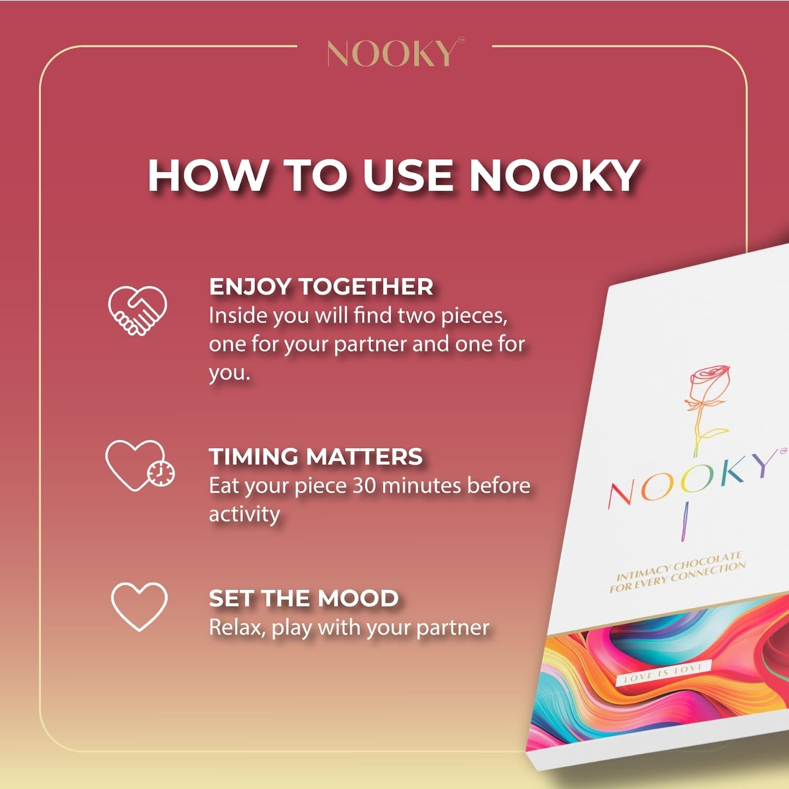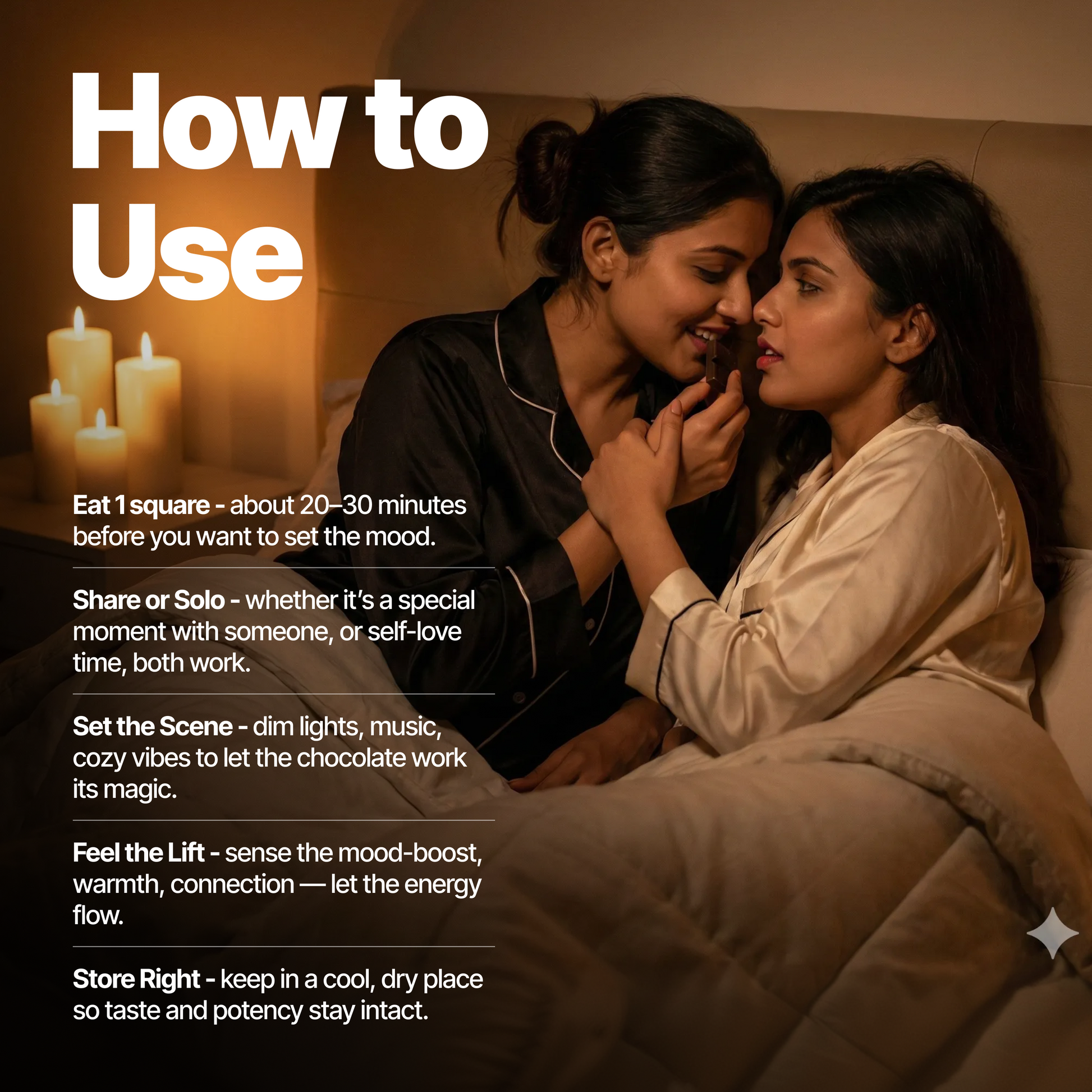 - Savor the Moment: Enjoy one square about 30 minutes before intimacy or just when you want to feel elevated.