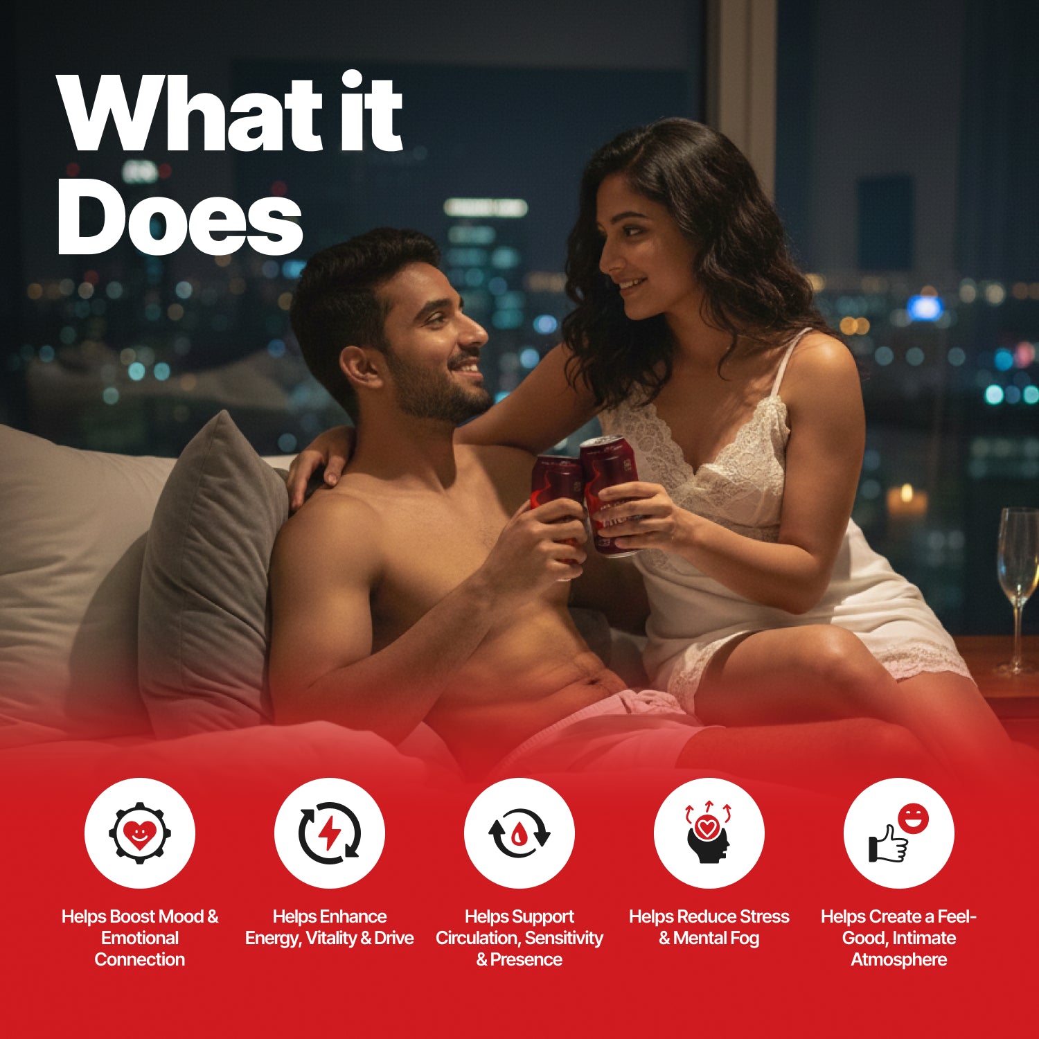 - Sip about 30 minutes before intimate moments to let the mood-enhancing blend kick in.