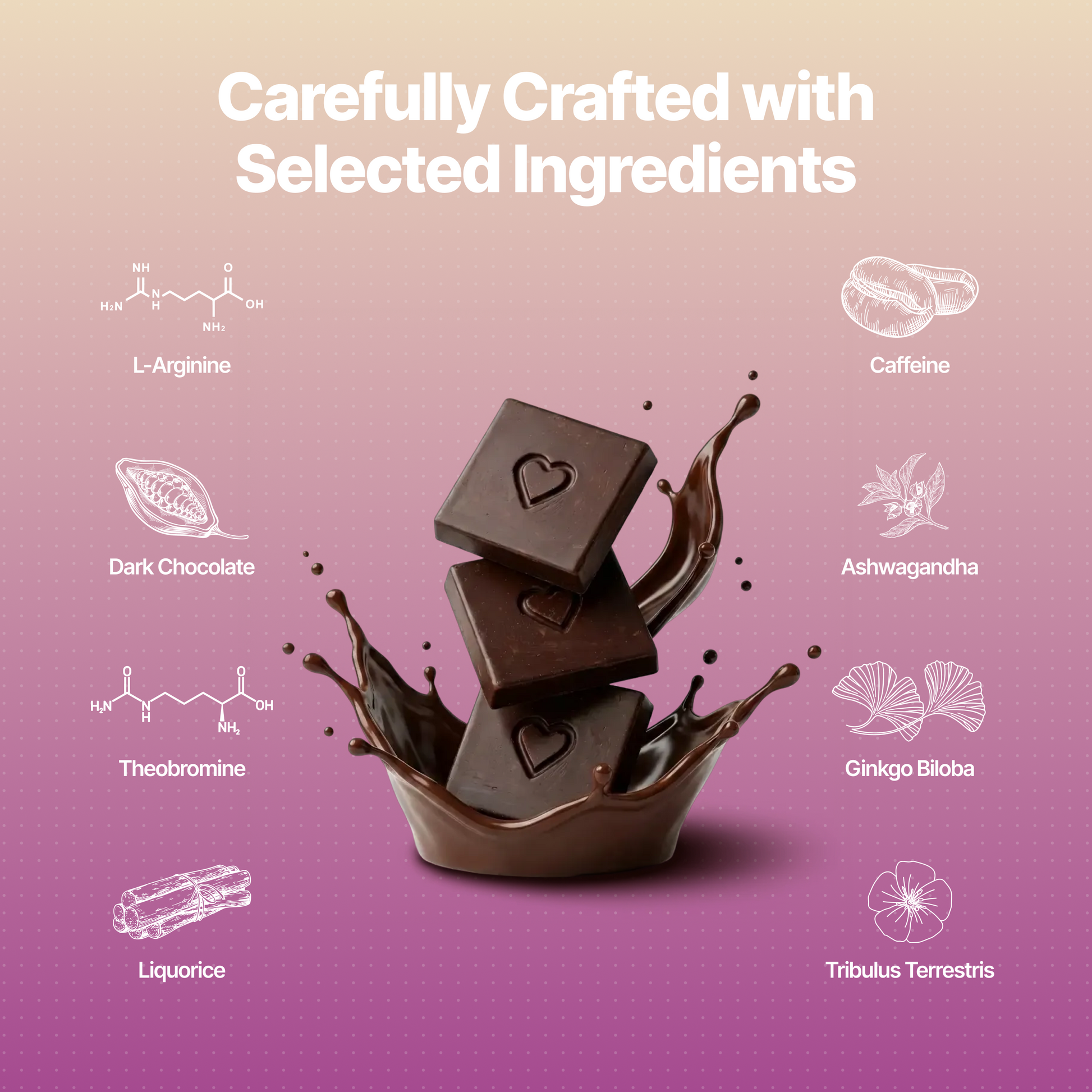 Nooky Mini Bites — two rich, indulgent couple chocolates — are crafted to warm the senses, ease the mind and gently spark desire between partners. Their smooth, luxurious flavour creates a relaxed, inviting atmosphere, making them the perfect beginning to a romantic and intimate moment.