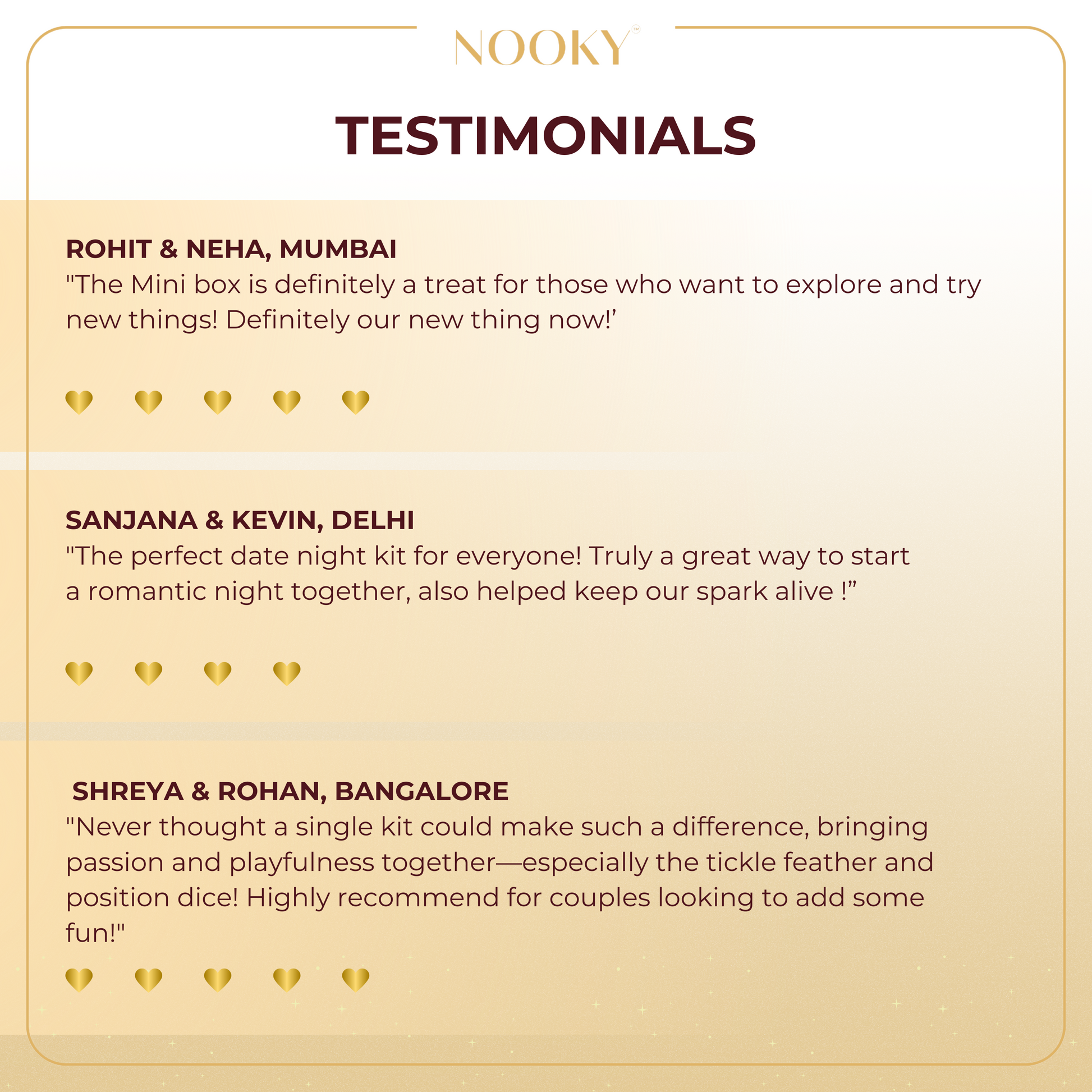 As a Nooky tester put it: a lit candle, chocolate shared, blindfolded laughter, and dice that led to giggles and heartfelt confessions—making a regular night feel like a rediscovery.